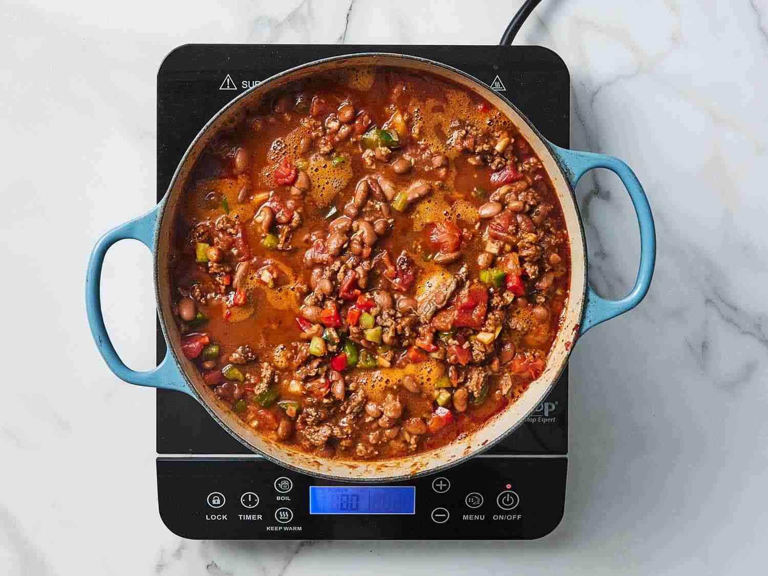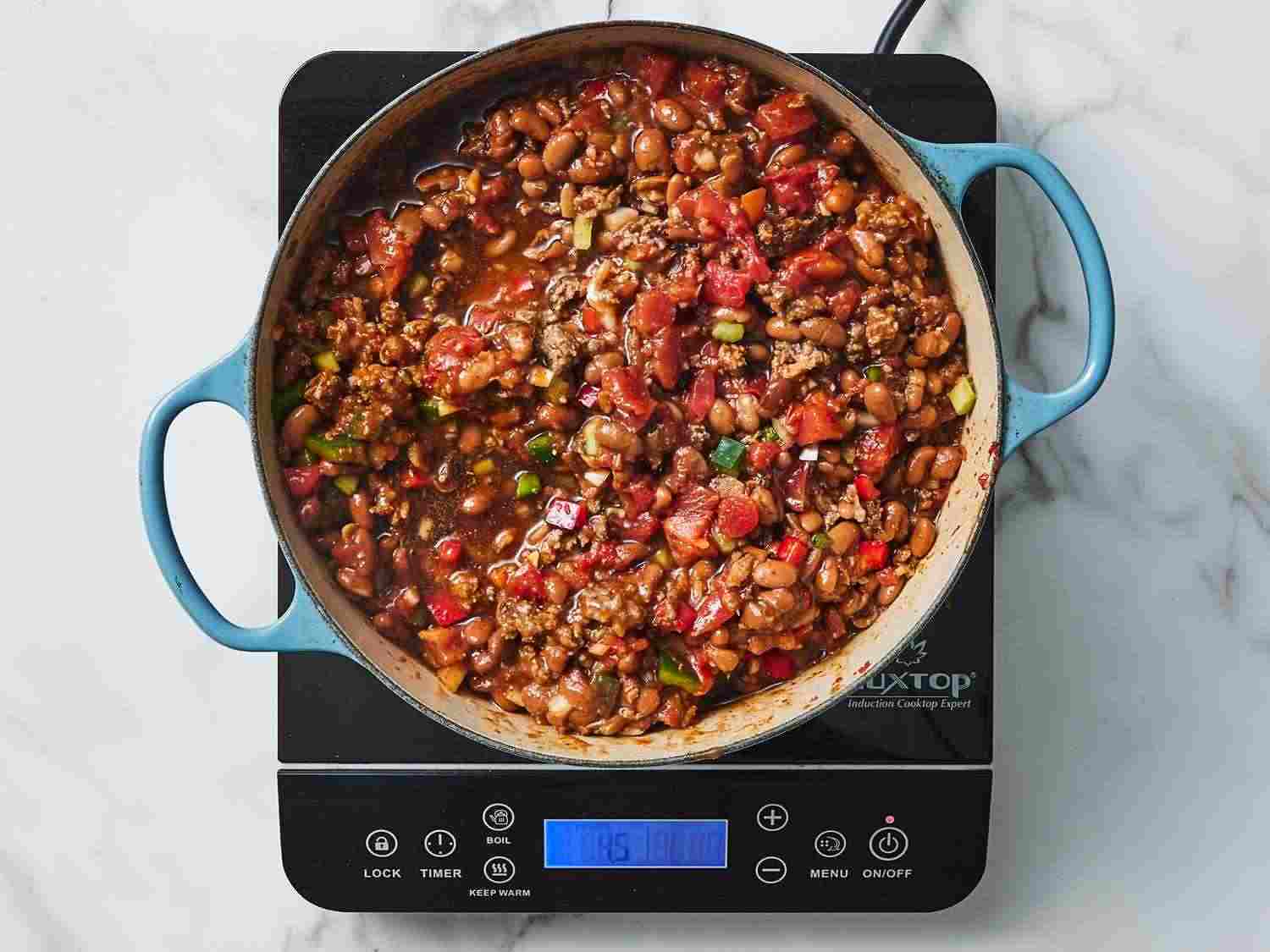 - Step 4:Taste and season with more salt, pepper, and chili powder if necessary. The longer the chili simmers, the better it will taste. Remove from the heat and serve, or cool, refrigerate, and reheat the next day. Dotdash Meredith Food Studios